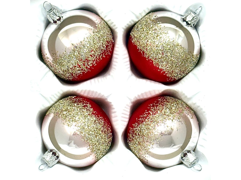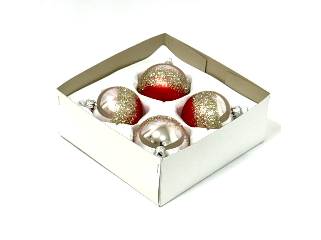 Skleněná vánoční koule Ø 7 cm – Champagne-ruby třpyt (sada 4 ks)