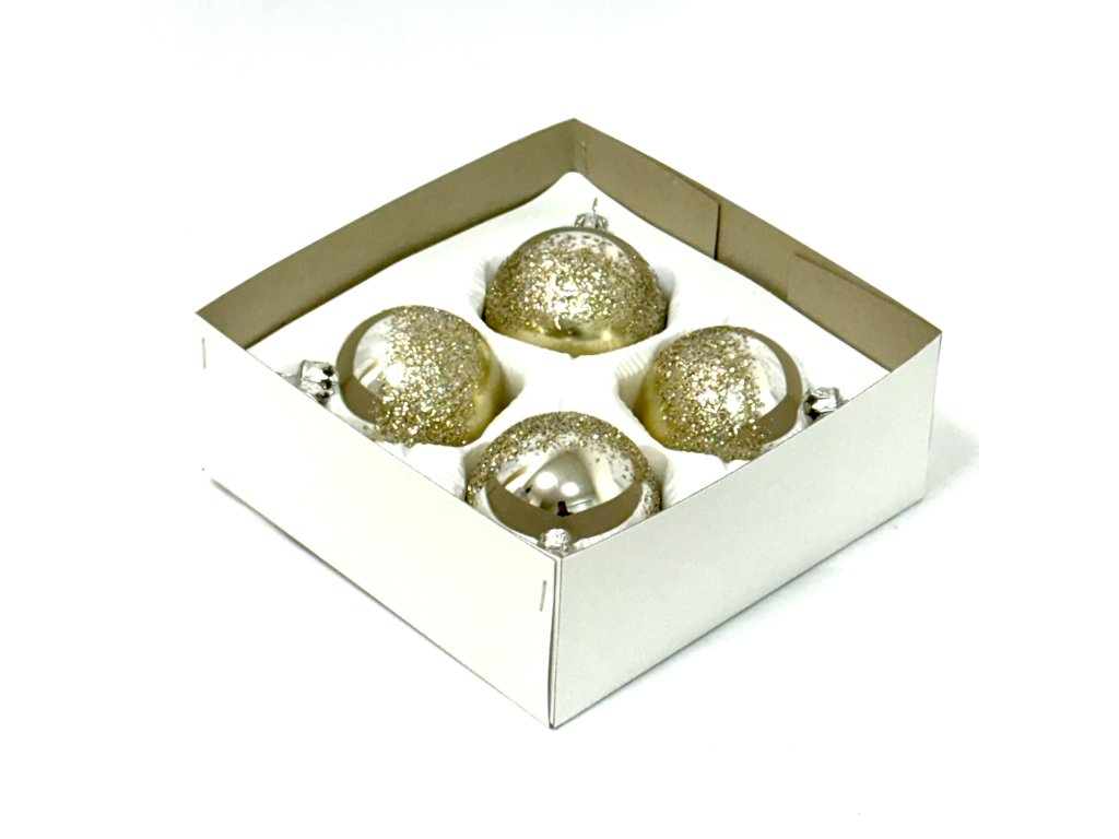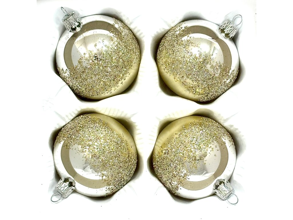 Skleněná vánoční koule Ø 7 cm – Champagne zlatý třpyt (sada 4 ks)