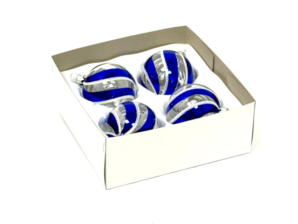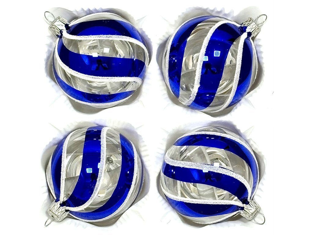 Skleněná vánoční koule Ø 7 cm – Cobalt spirála & mrazivý lem (sada 4 ks)