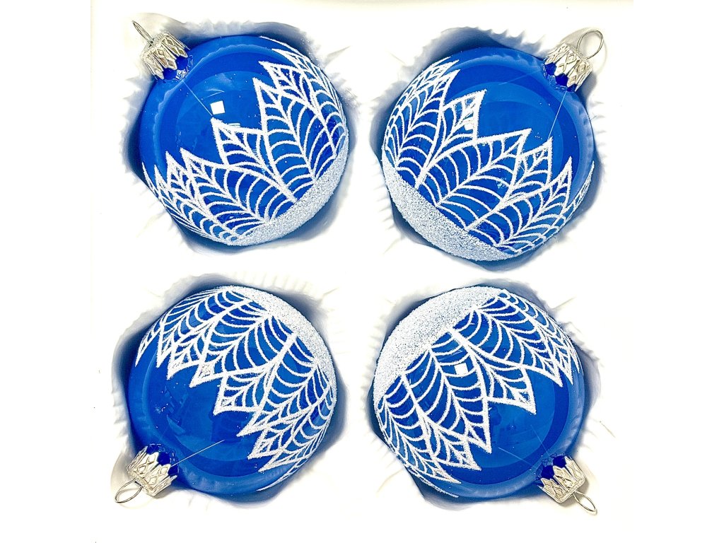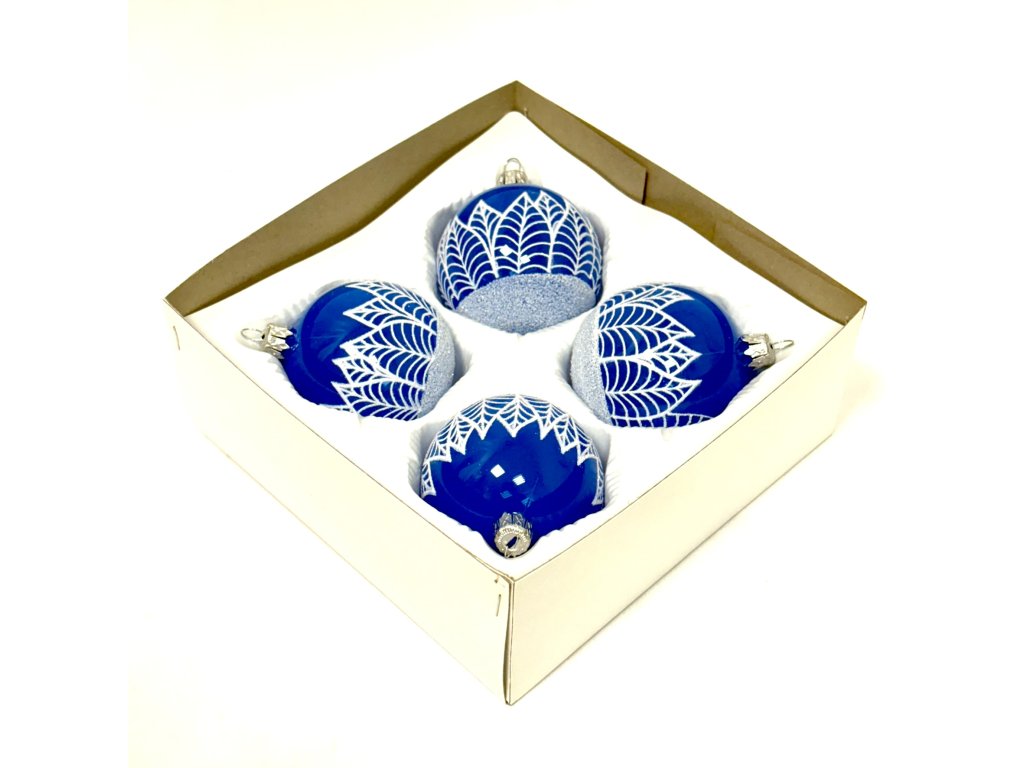 Skleněná vánoční koule Ø 7 cm – Kobaltová ledová krajka (sada 4 ks)