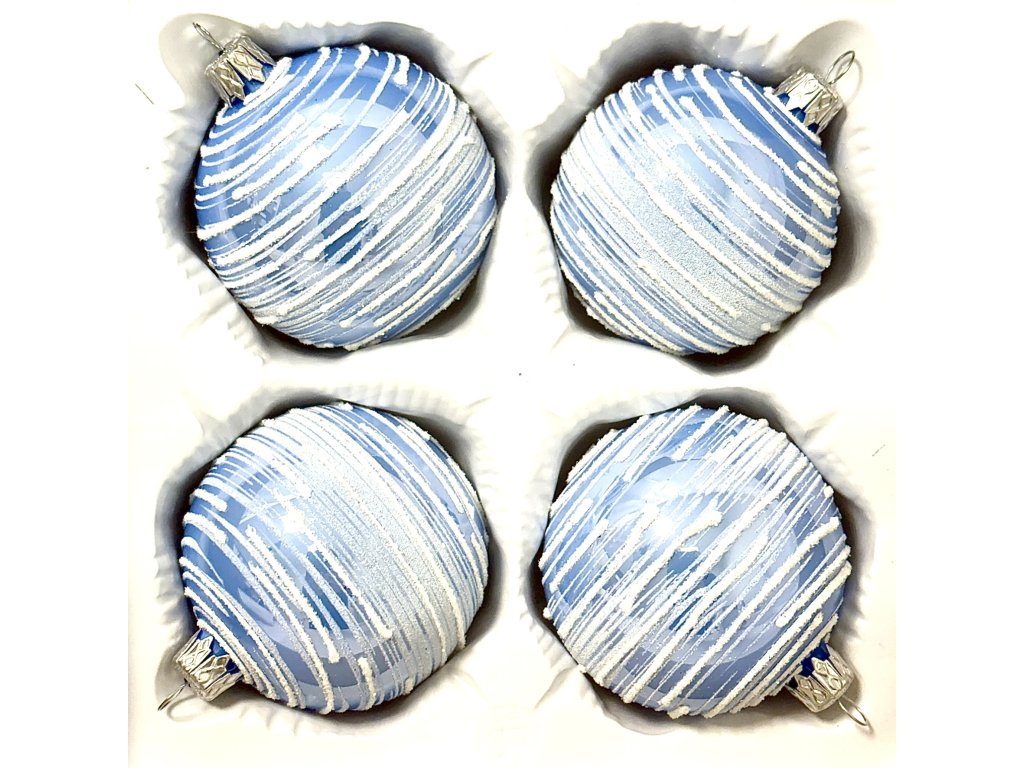 Vneste na svůj stromek moderní zimní poetiku. Každá koule je ručně vyfoukaná v beskydské sklárně IRISA a získává sametově chladný modrý nástřik připomínající zamrzlé jezero. Poté je po celé ploše ručně nanášena vrstva bílých, nepravidelných tahů s drobounkým glitrem, které evokují námrazu na okně nebo ledové praskliny.