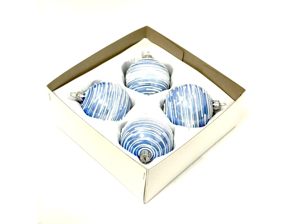 Skleněná vánoční koule Ø 7 cm – Ledově modrá abstrakce (sada 4 ks)