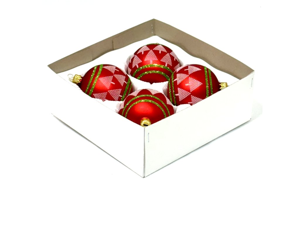 Vneste na svůj stromek hravou atmosféru severských Vánoc. Každá koule je ručně vyfoukaná v beskydské sklárně IRISA a získává sametově matný rudý nástřik, na kterém se opakuje minimalistický motiv bílých jehličnanů připomínající vzor na zimním svetru. Dvě zelené glitrové linky dodávají moderní jiskru a opticky zvýrazňují kulatý tvar.