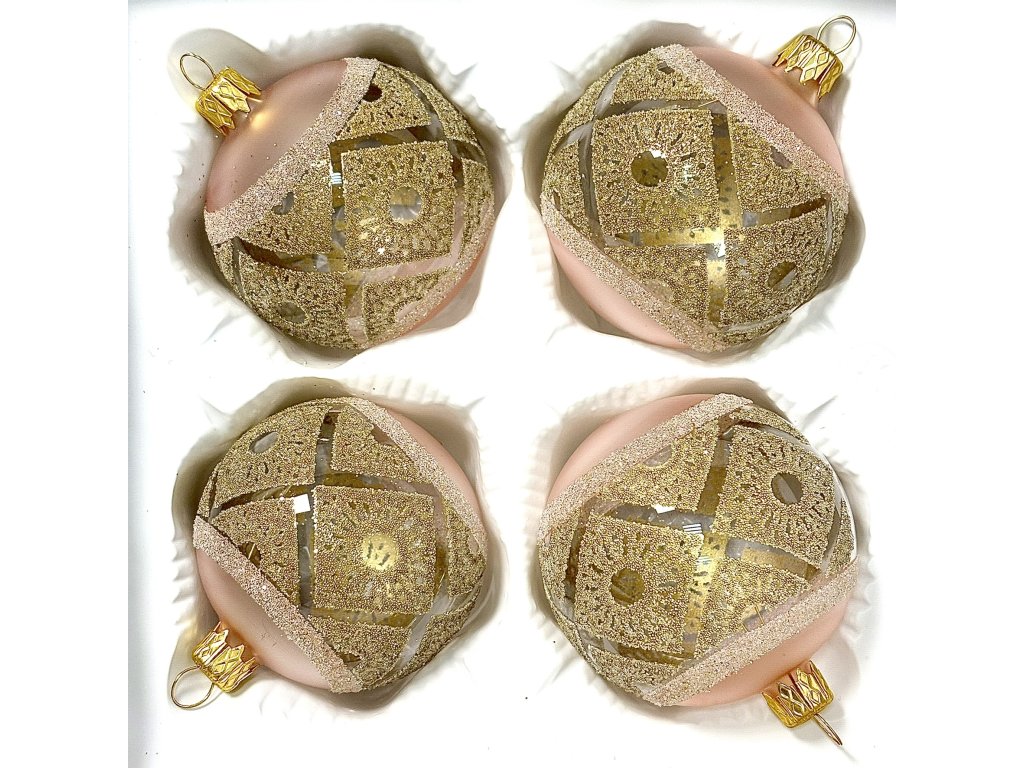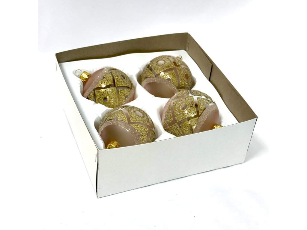 Skleněná vánoční koule Ø 7 cm – Pudrově růžová zlatá mozaika (sada 4 ks)