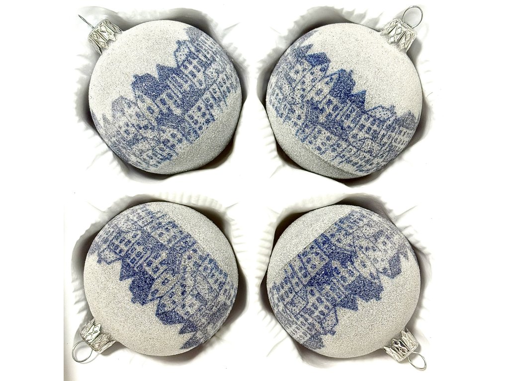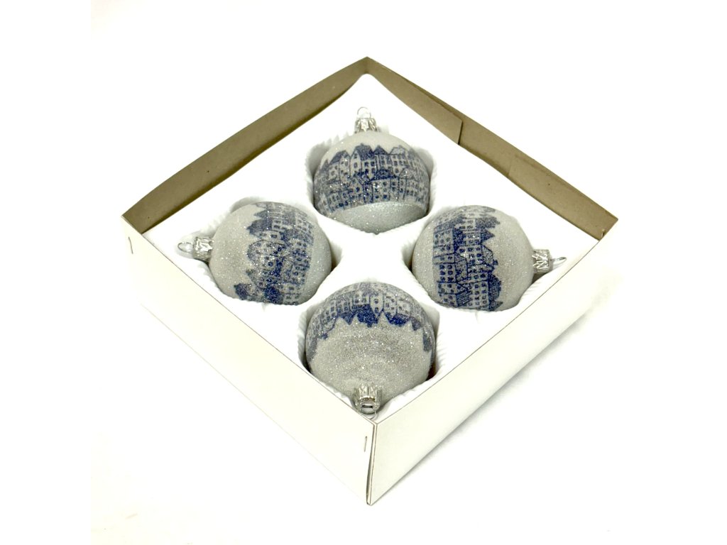 Skleněná vánoční koule Ø 7 cm – Stříbrné městečko (sada 4 ks)