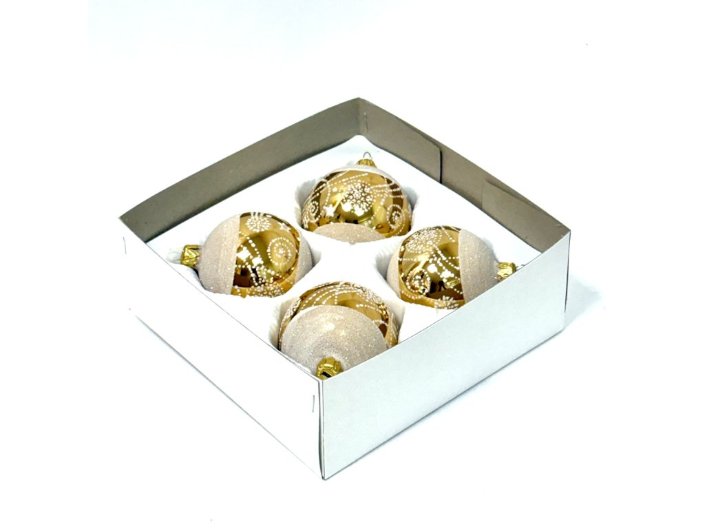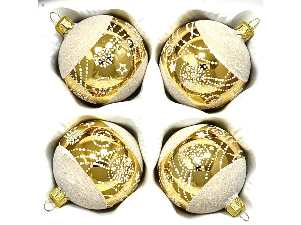 Skleněná vánoční koule Ø 7 cm – zlatá s bílým sněhovým efektem (sada 4 ks)