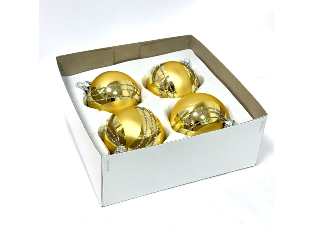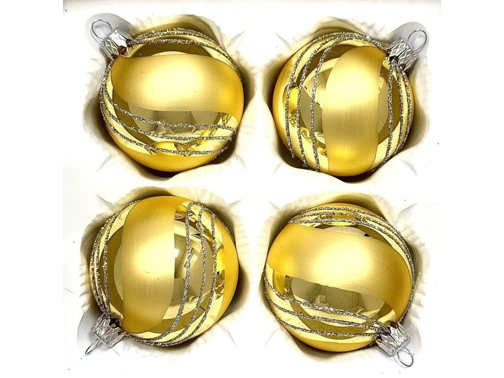 Skleněná vánoční koule Ø 7 cm – Zlatá stuha & spirála (sada 4 ks)