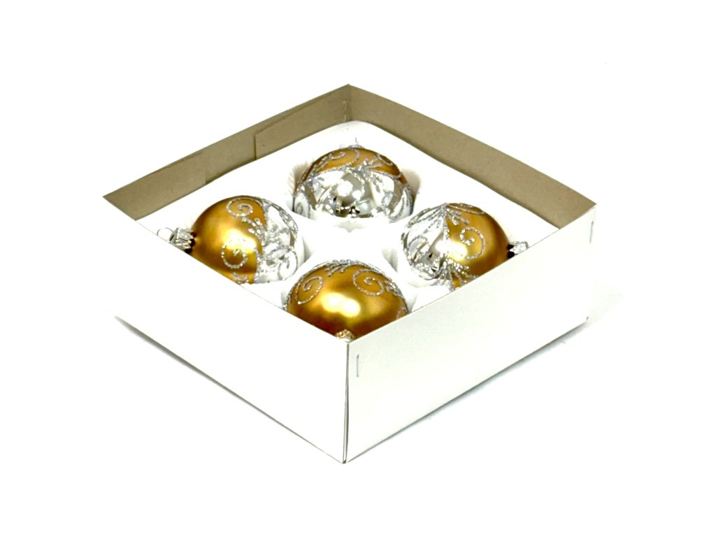 Skleněná vánoční koule Ø 7 cm – Zlatě‑stříbrná arabeska (sada 4 ks)
