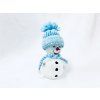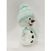 Veselý ručně foukaný skleněný sněhulák s mintovou pletenou čepicí a šálou, ideální pro zimní a vánoční výzdobu.