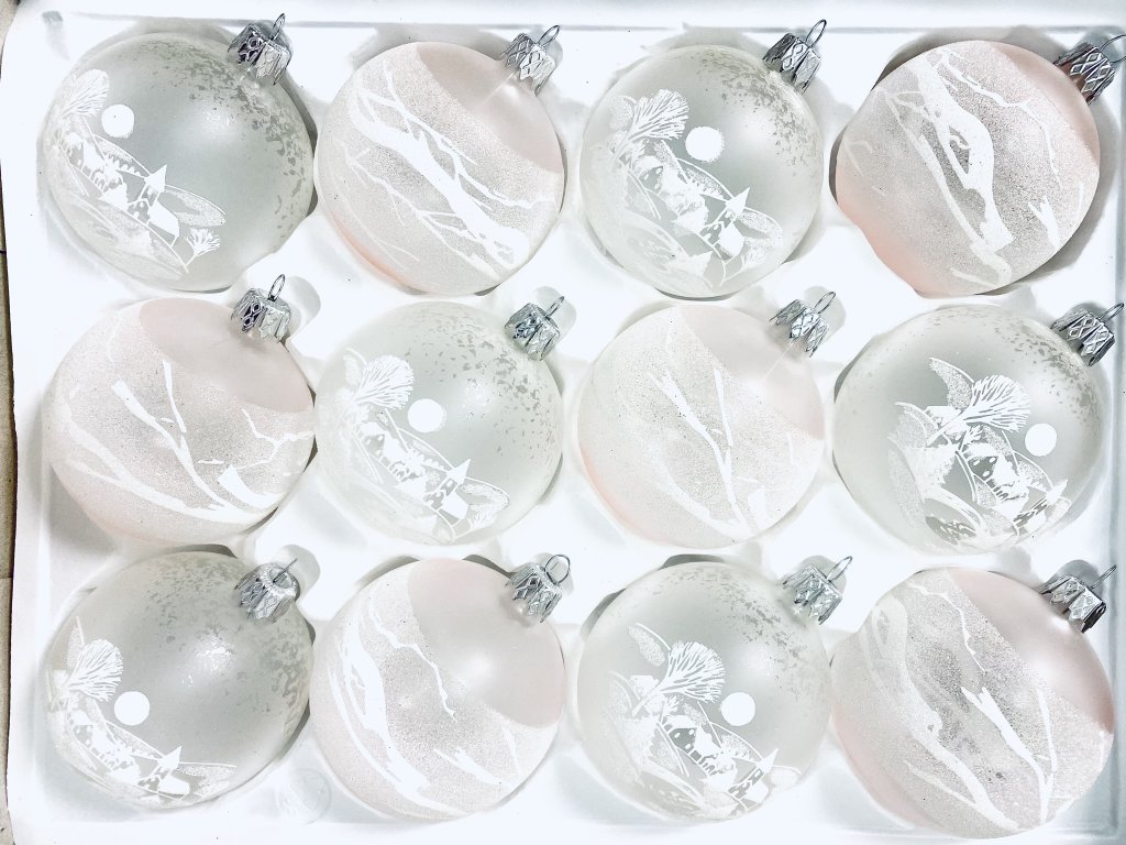 "Sada 12 ks Skleněných ozdob - Ranní sluneční paprsky (bílá a jemná růžová, Velikost 7cm) IRISA"