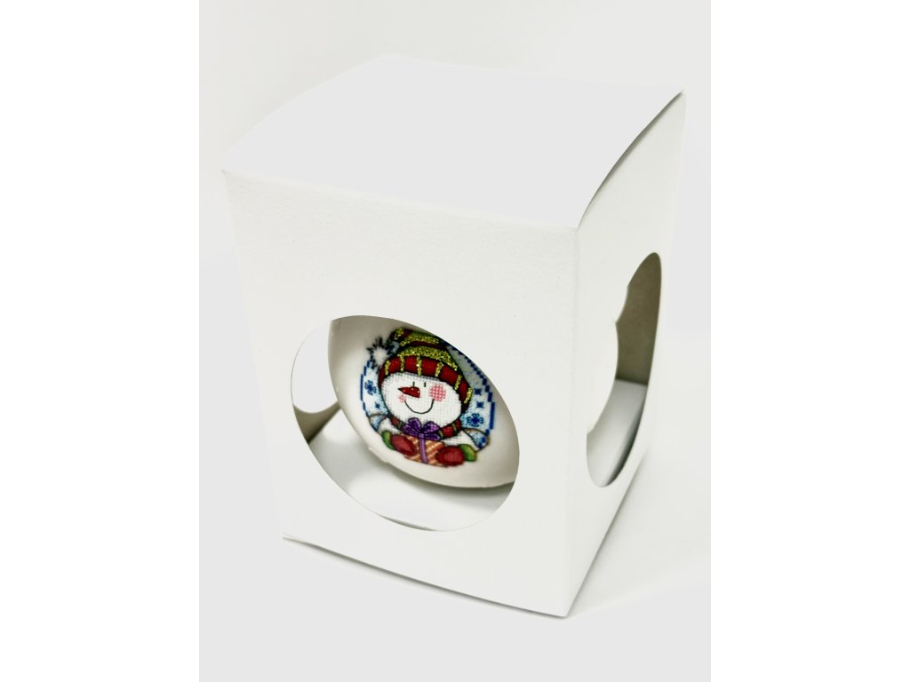 Bílá koule se sněhulákem s dárkem a puntíky – 8 cm (s dárkovou krabičkou) IRISA