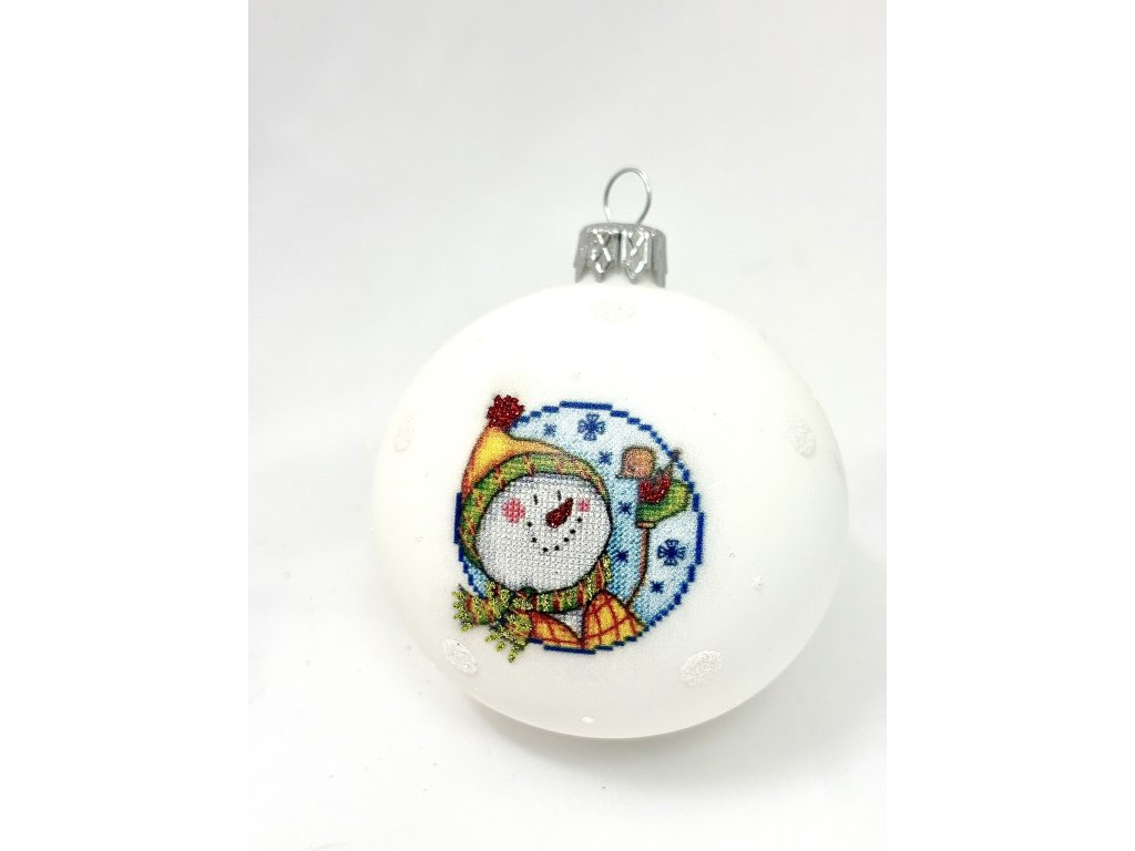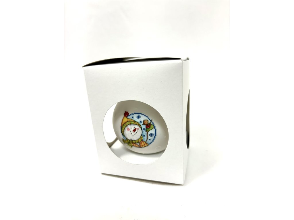 Bílá vánoční koule se sněhulákem – 8 cm (s dárkovou krabičkou) IRISA