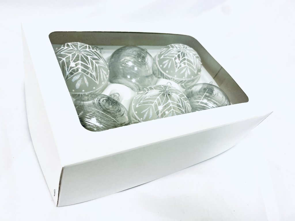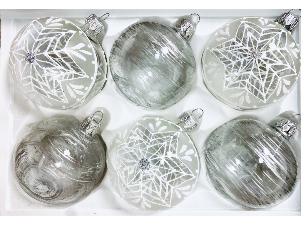 Exkluzivní skleněná vánoční ozdoba s dekorem a větrem (Sada 6 ks, velikost 7 cm) IRISA"