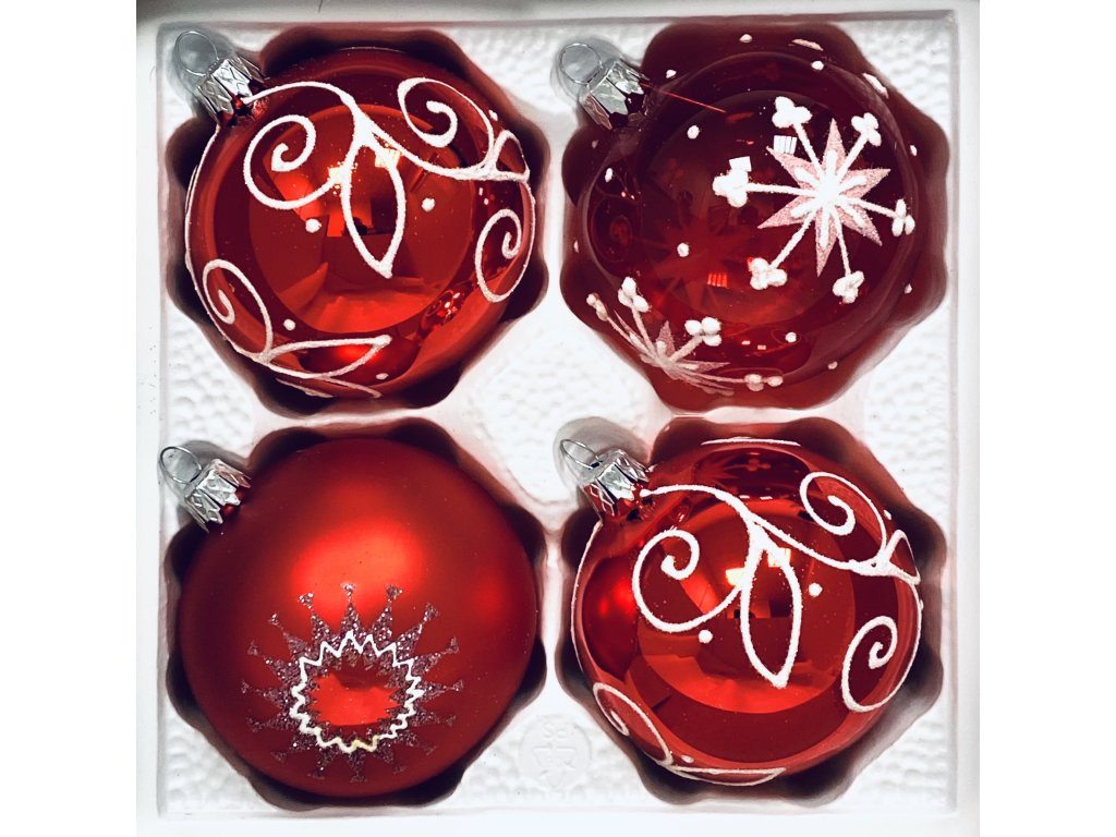 IRISA Červené zimní pohádky: Luxusní vánoční sada (Velikost 7 cm, 4 ks)