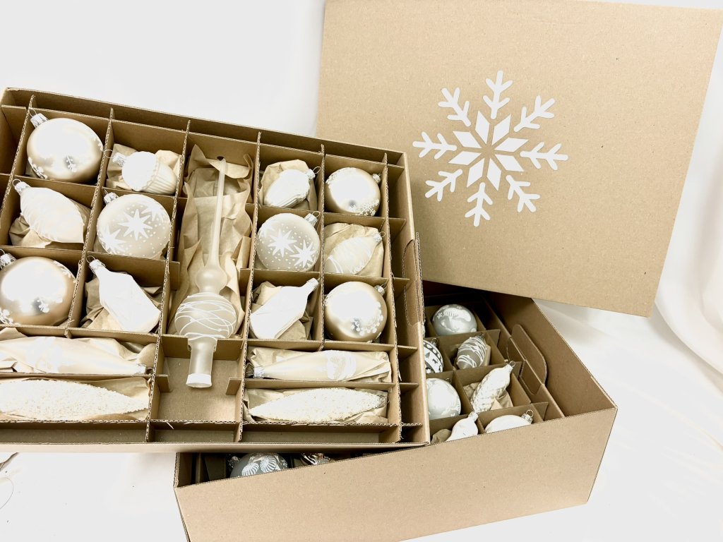 Irisa Luxusní sada skleněných vánočních ozdob v bílo-stříbrné eleganci – 37 ks se špicí