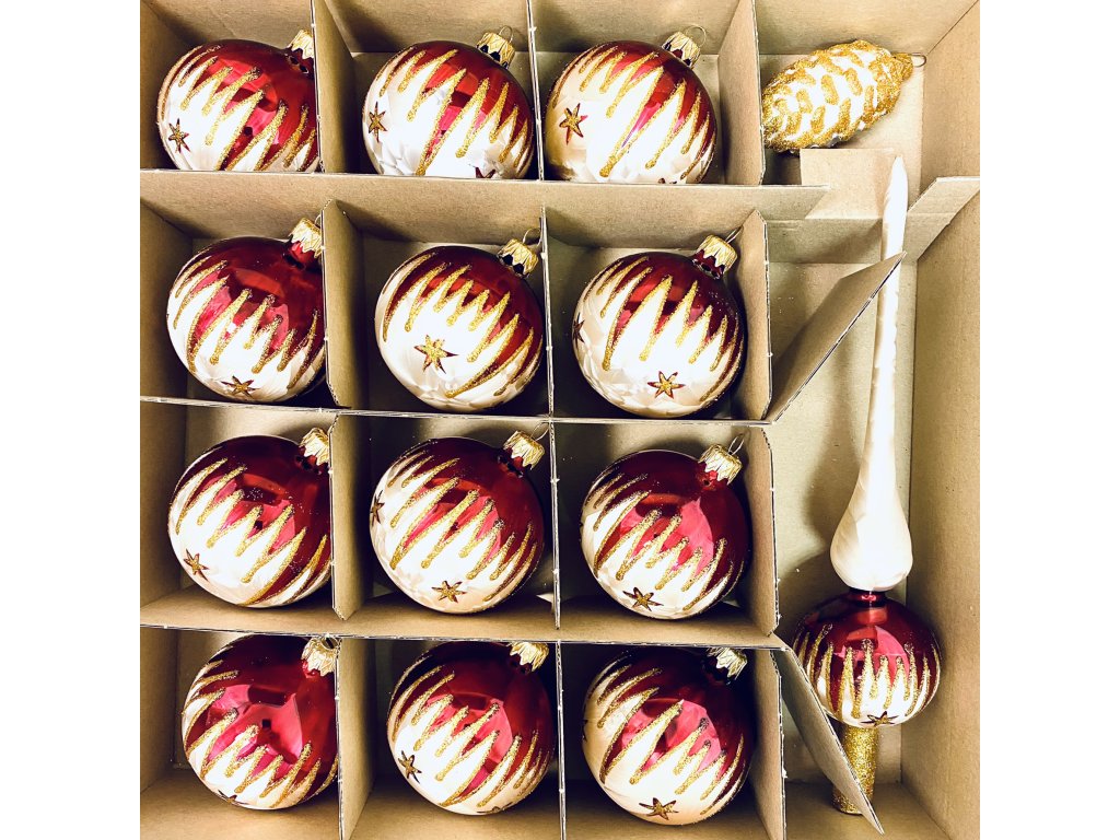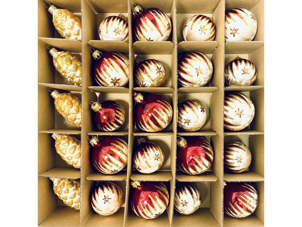 Sada 39 ks skleněných vánočních ozdob s tradičním dekorem. Ručně foukané a malované ozdoby na stromeček přispívají ke kouzlu Vánoc. Jedinečné a originální ručně foukané skleněné ozdoby IRISA. Vánoční ozdoby, co mají příběh. Ty pravé skleněné z Valašska. 100% ruční práce a dlouholetá tradice. Elegantní skleněné vánoční ozdoby krásně rozzáří Váš stromeček a Vašemu domovu zajistí dokonalou vánoční atmosféru. Vy se tak vrátíte zpátky do časů, kdy jste nedočkavostí ani nedojedli štědrovečerní večeři a už netrpělivě očekávali zvonění Ježíška. Vykouzlete si jedinečnou vánoční atmosféru s českými skleněnými ozdobami Irisa.