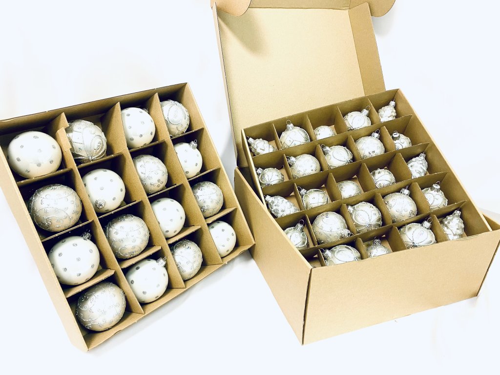 Irisa LUXUSNÍ SET Vánoční ozdoby KATRIN - bílé dekor ornamenty , BOX 41 ks