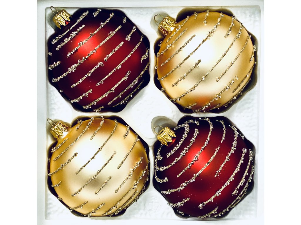 IRISA Ranní mlha ve zlatě a červeni: Skleněná vánoční sada 4 ks (Velikost 7 cm)