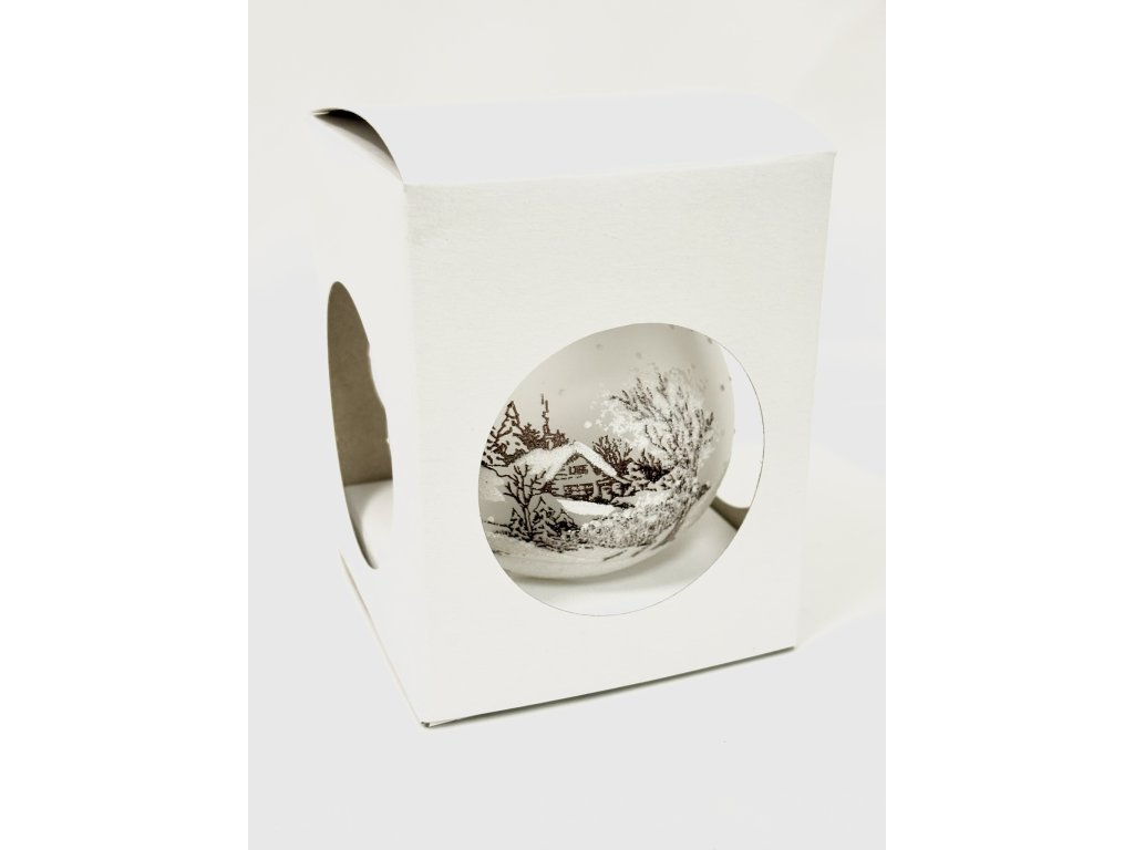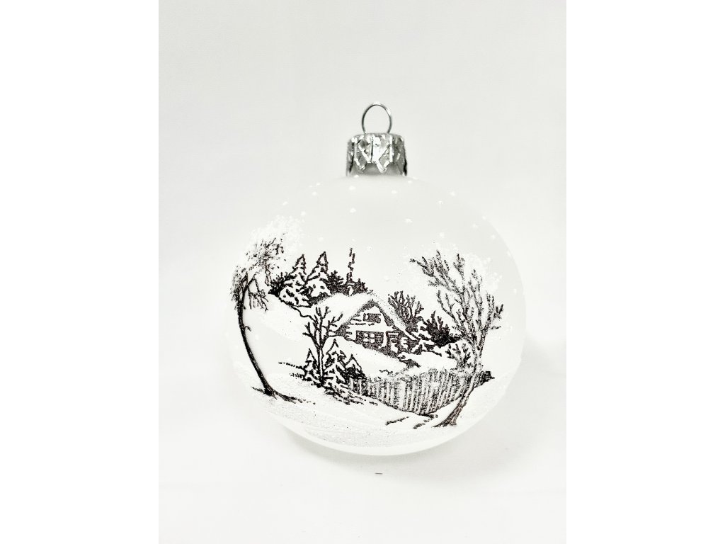 Tato elegantní skleněná vánoční koule o průměru 8 cm přináší kouzelný obraz zasněžené chaloupky uprostřed zimní krajiny. Každý detail je pečlivě malován ručně, což dělá z každého kusu originální vánoční dekoraci. Foukané sklo a jemné třpytivé zdobení podtrhují tradiční české sklářské umění, které rozzáří váš vánoční stromeček a navodí atmosféru klidu a pohody. Ideální také jako dárek, který potěší každého milovníka českých vánočních tradic.Doplňkové parametry