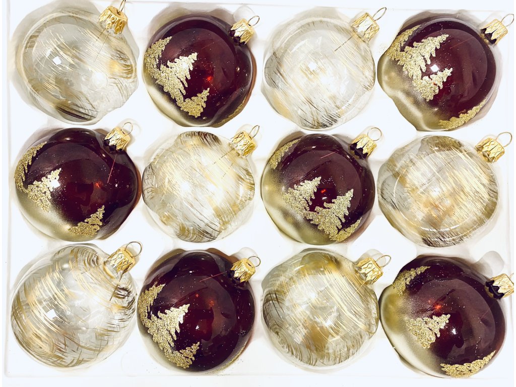 IRISA Sada skleněných vánočních ozdob ZAPADAJÍCÍ SLUNCE 7 cm, Sada 12 ks
