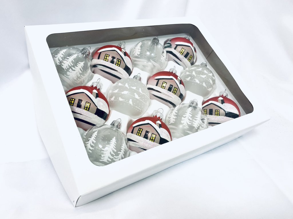IRISA Skleněná ozdoba PRAETERITUS 7 cm, balení 12 ks bílá, červená