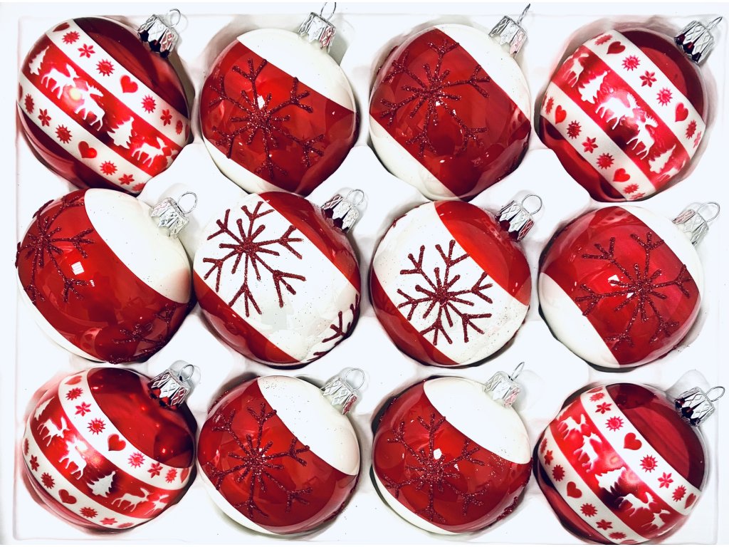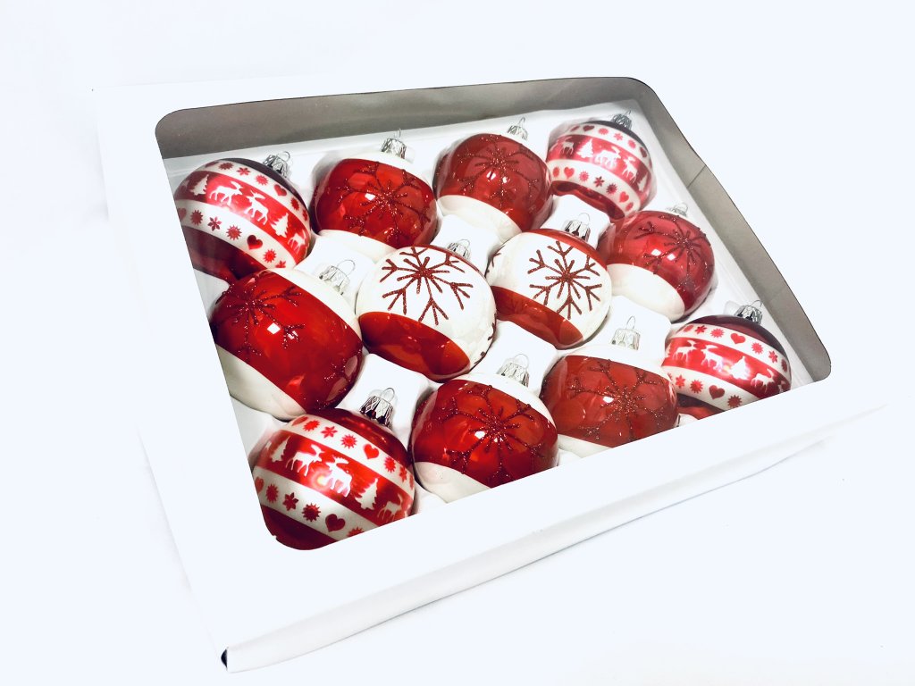 IRISA Skleněná ozdoba SADA NORDIC AMALIE 7 cm, balení 12 ks červená