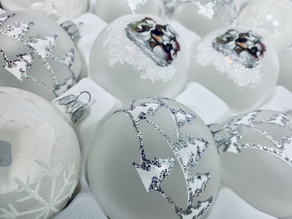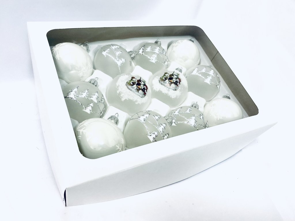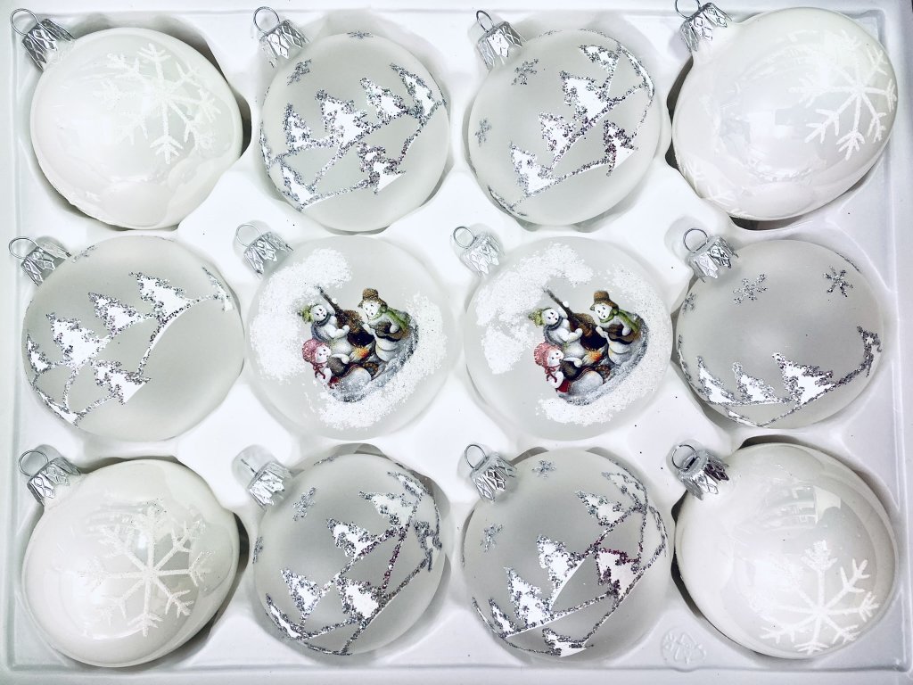 IRISA Skleněná ozdoba SADA POJĎME VEN 7 cm, balení 12 ks bílá