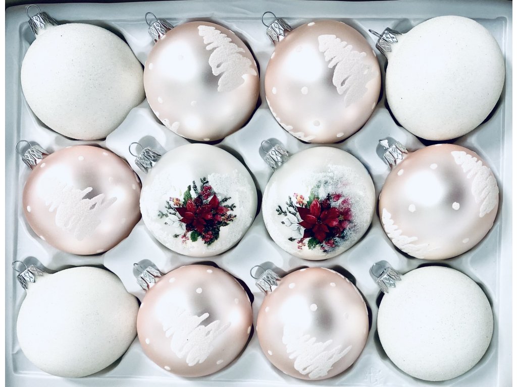 IRISA Skleněná ozdoba SADA PRYŠEC NÁDHERNÝ 7 cm, balení 12 ks bílá, růžová