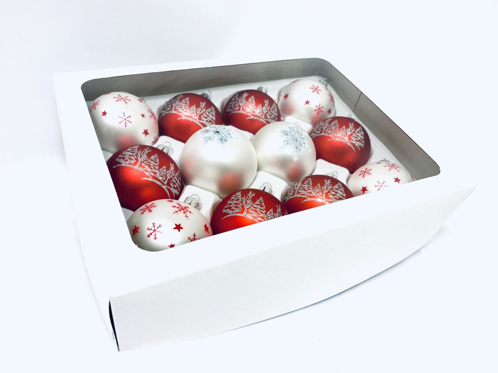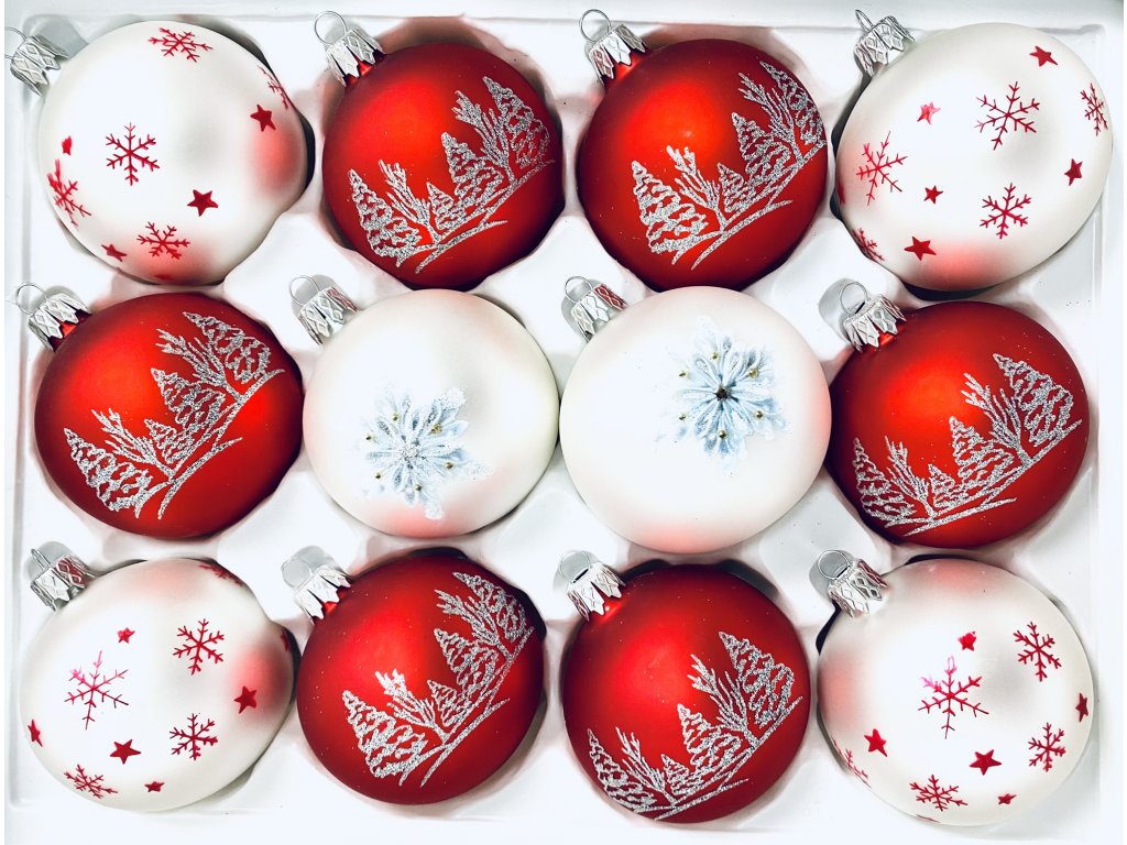 IRISA Skleněná ozdoba SADA SEN 7 cm, balení 12 ks bílá, červená