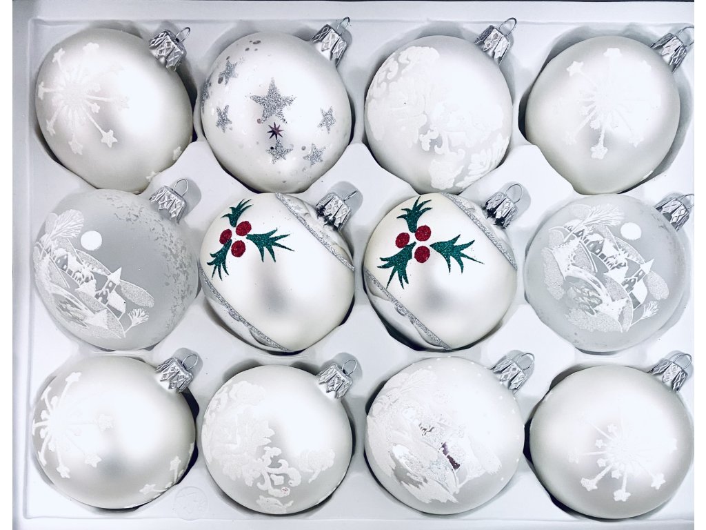 IRISA Skleněná ozdoba SIDERA CAELESTIS 7 cm, balení 12 ks bílá