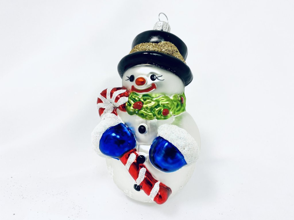 Irisa Skleněná vánoční ozdoba VESELÝ SNĚHULÁK barva bílá velikost 11 cm