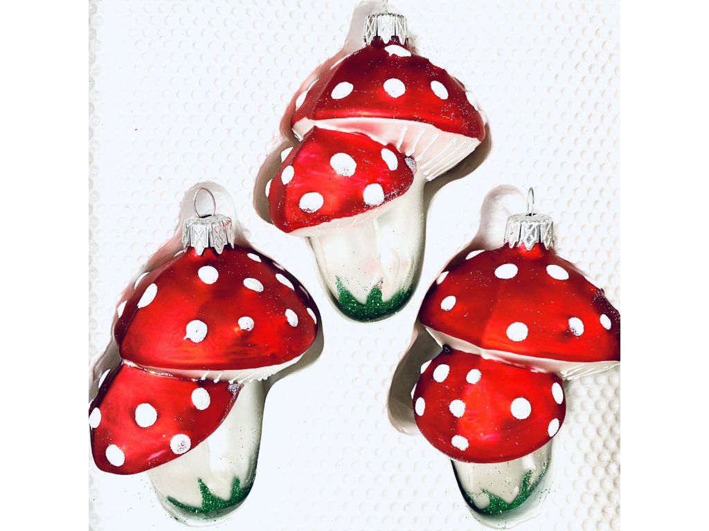 Irisa Skleněné vánoční ozdoby MUCHOMŮRKA sada 3 ks velikost 10 cm