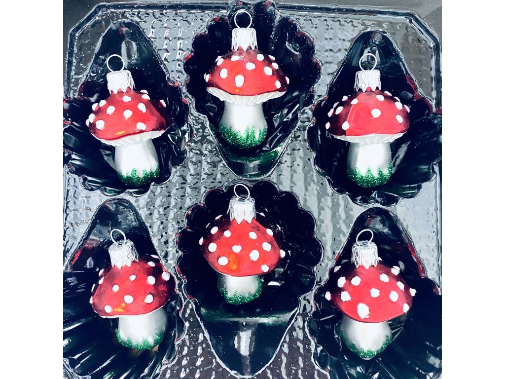 Irisa Skleněné vánoční ozdoby MUCHOMŮRKA sada 6 ks velikost 6 cm