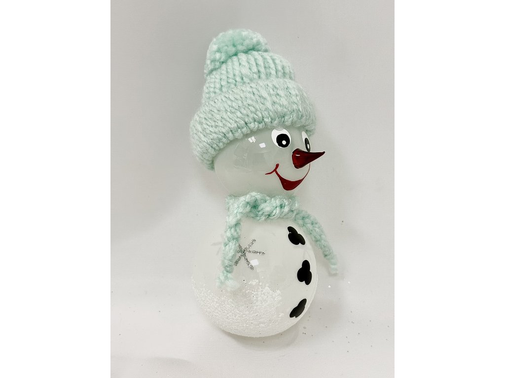 Irisa Sněhuláček s mintovou čepicí – ručně vyráběná skleněná figurka 12 cm ANET 1 ks