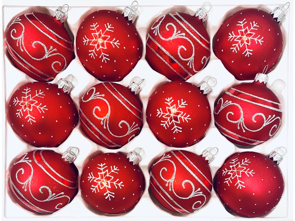 Irisa Vánoční exkluzivní ozdoby DIANA červené koule Velikost 7 cm, SET 12 ks