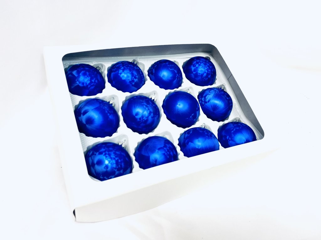Irisa Vánoční exkluzivní ozdoby ELEONORA modré koule mrazolak Velikost 7 cm, SET 12 ks
