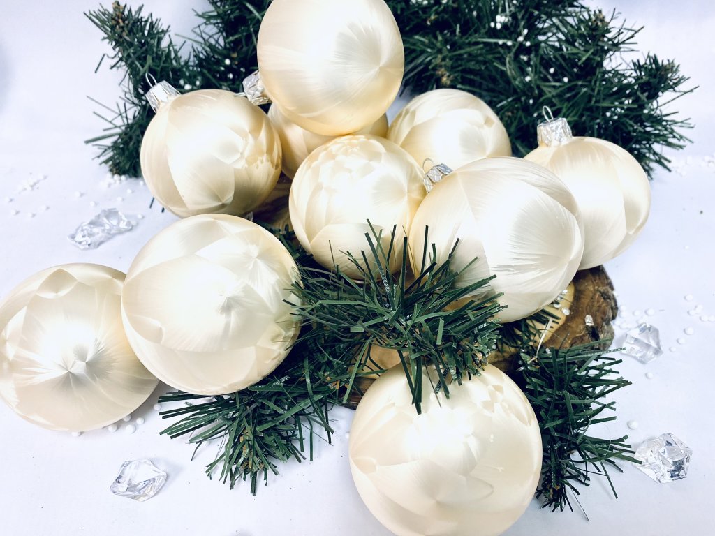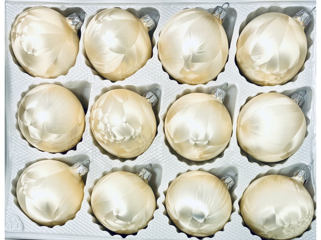Irisa Vánoční exkluzivní ozdoby GABRIELA smetanové koule dekor mrazolak Velikost 7 cm, SET 12 ks