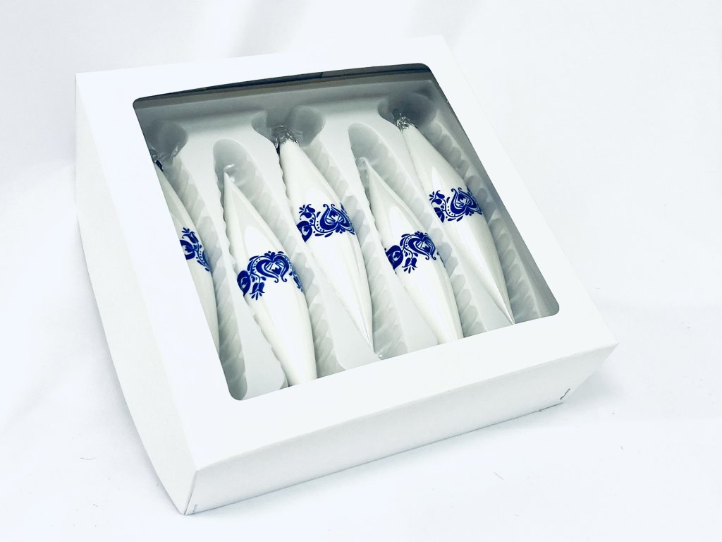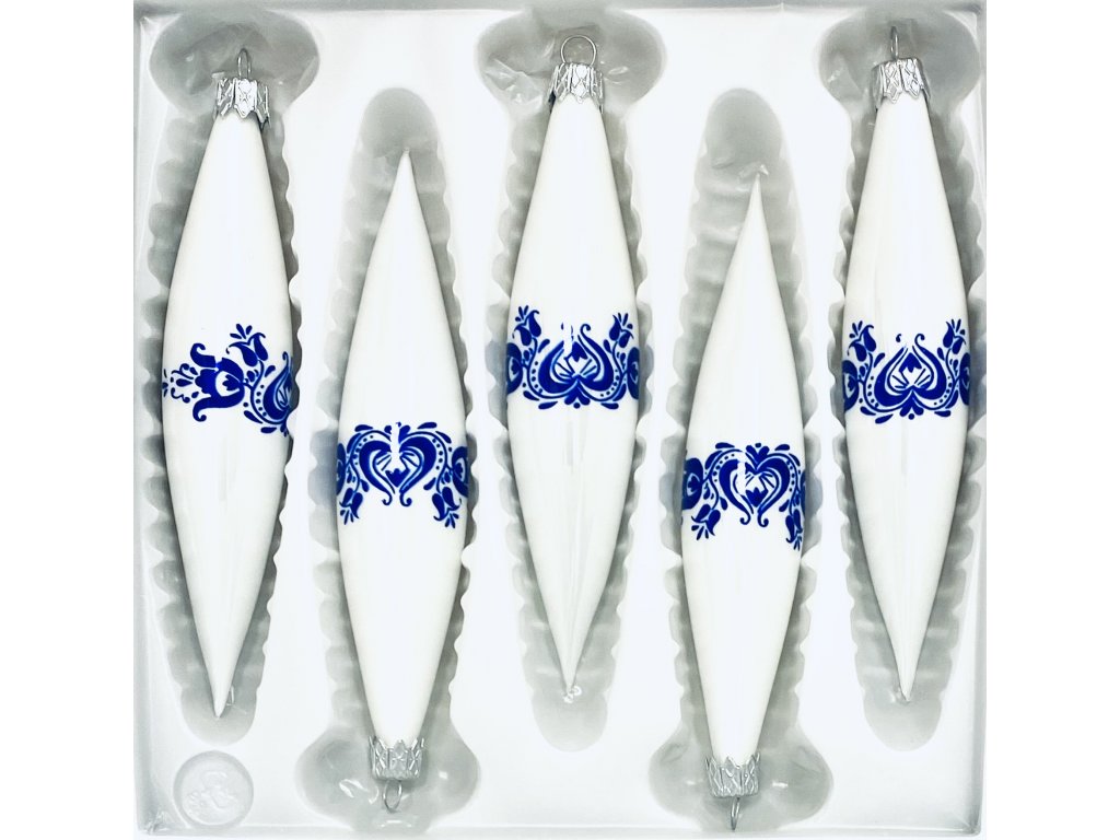 Irisa Vánoční ozdoby ANEŽKA bílá raketa s dekorem cibulák 14 cm, 5 ks