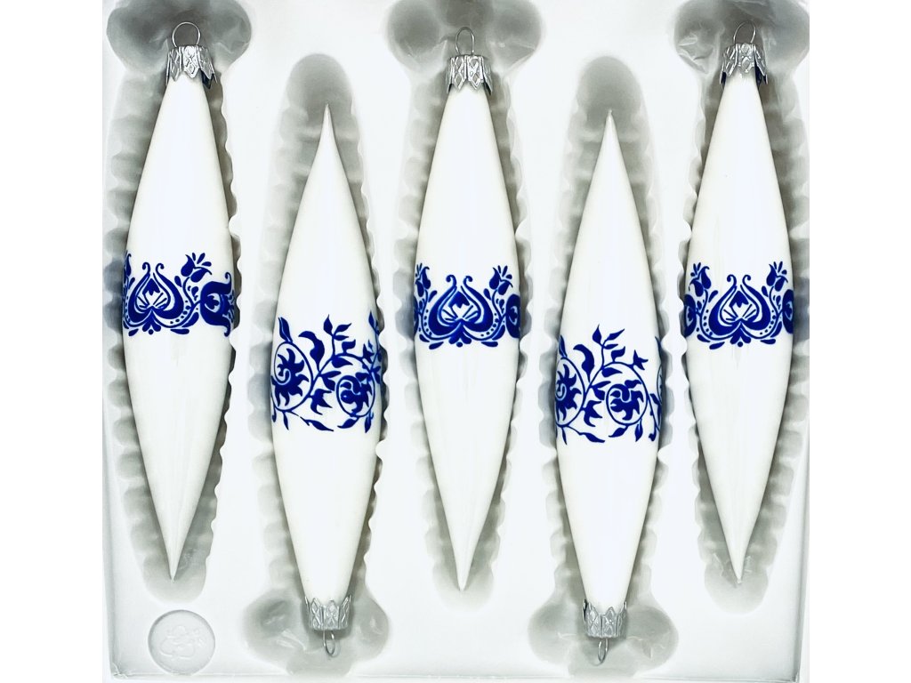 Irisa Vánoční ozdoby BEÁTA bílá raketa s dekorem cibulák 14 cm, 5 ks
