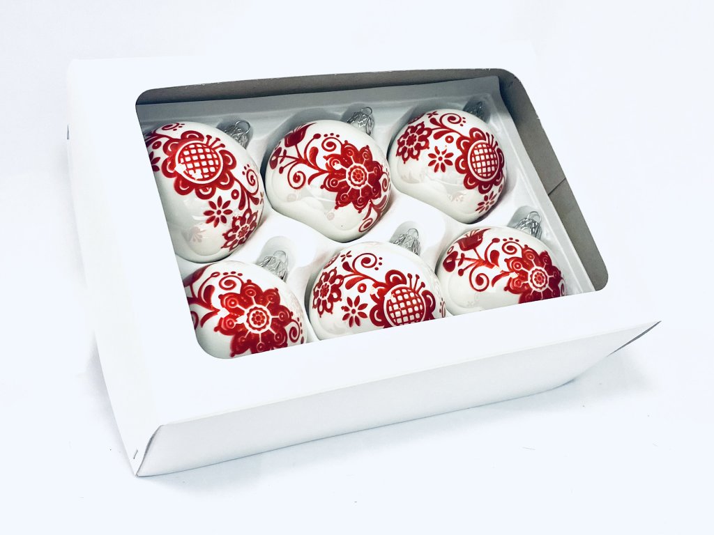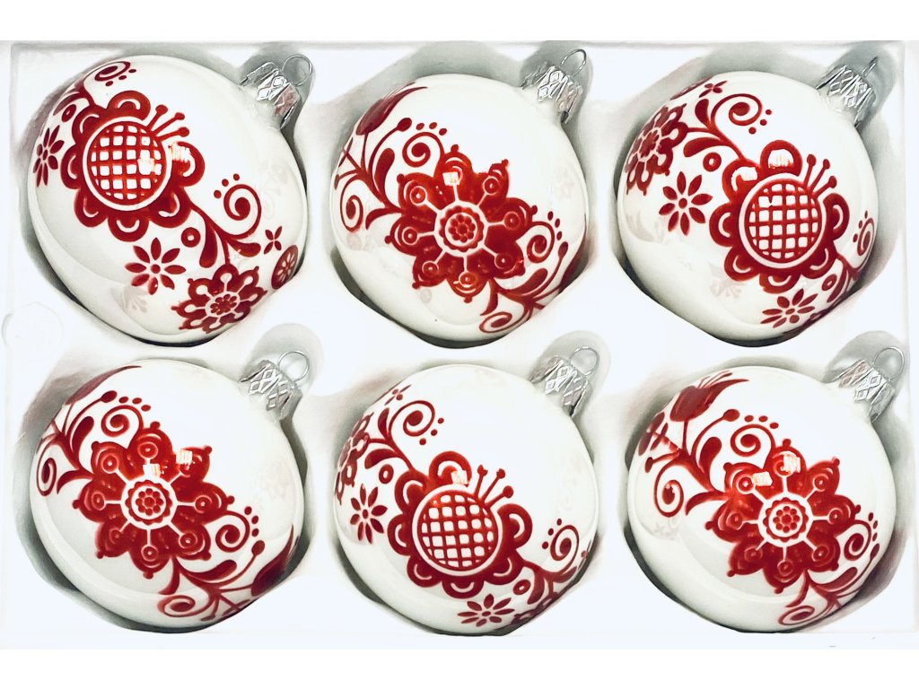 Irisa Vánoční ozdoby DITA bílé koule s dekorem cibulák 7 cm, 6 ks