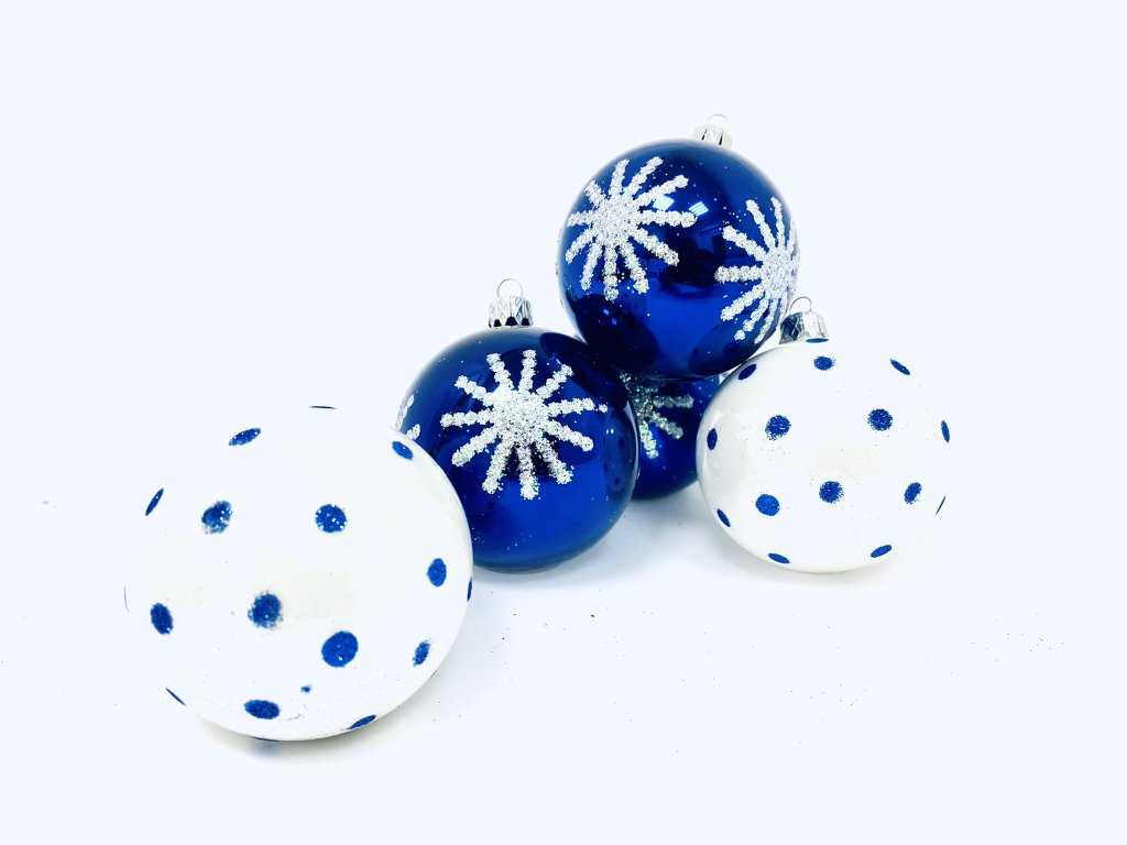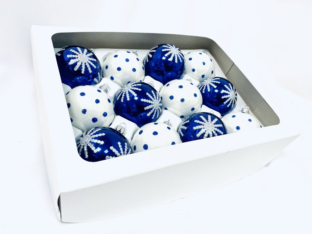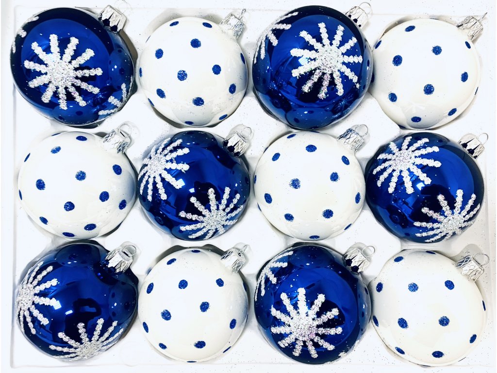 Irisa Vánoční ozdoby JUSTY kombinace bílé a modré koule s dekorem vločka 7 cm, SET 12 ks