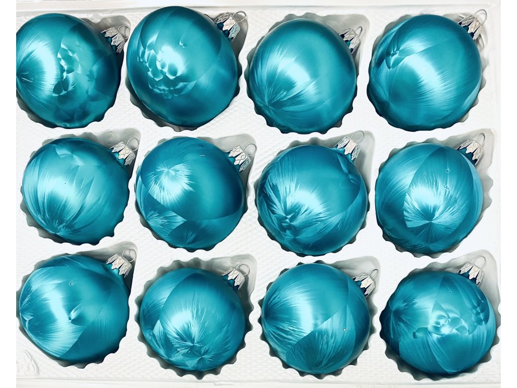 Irisa Vánoční ozdoby JUSTÝNA tyrkysové koule s dekorem mrazolak 7 cm, SET 12 ks
