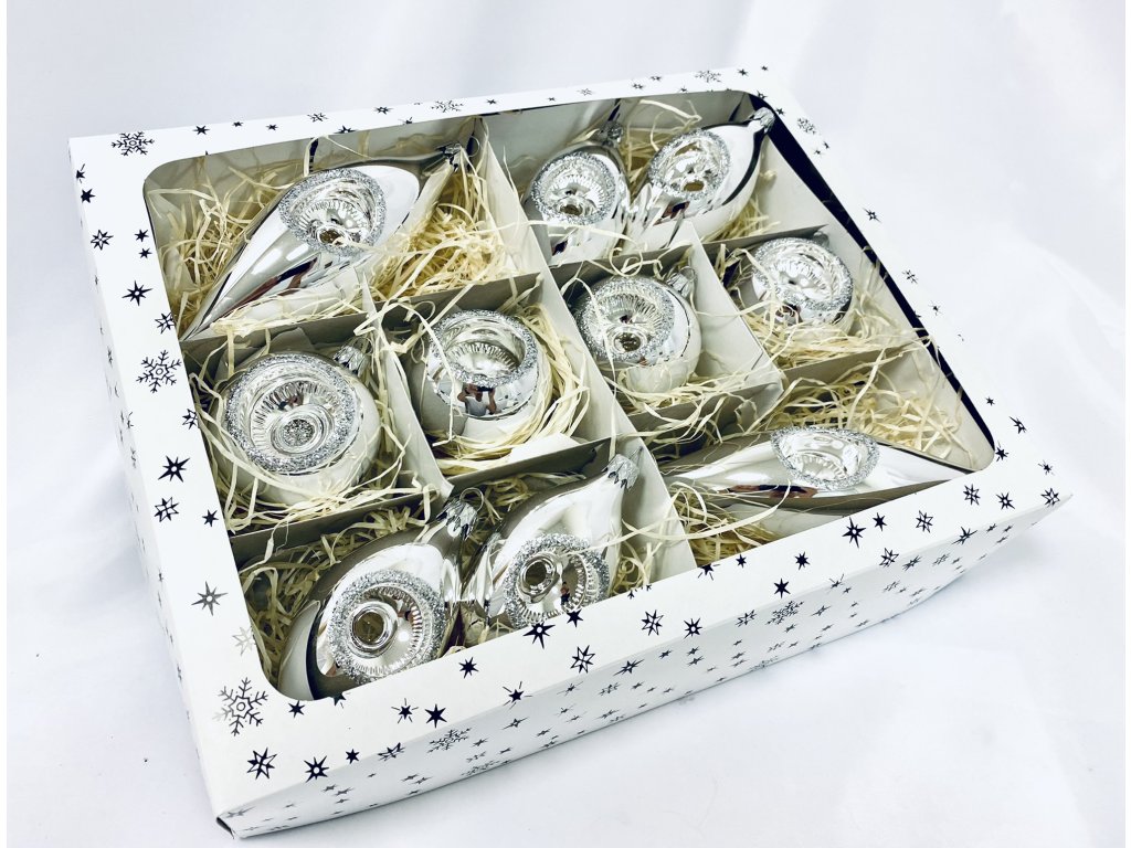 Irisa Vánoční ozdoby VZPOMÍNKA - REFLEKTOR stříbrné s jemným dekorem , SET 10 ks