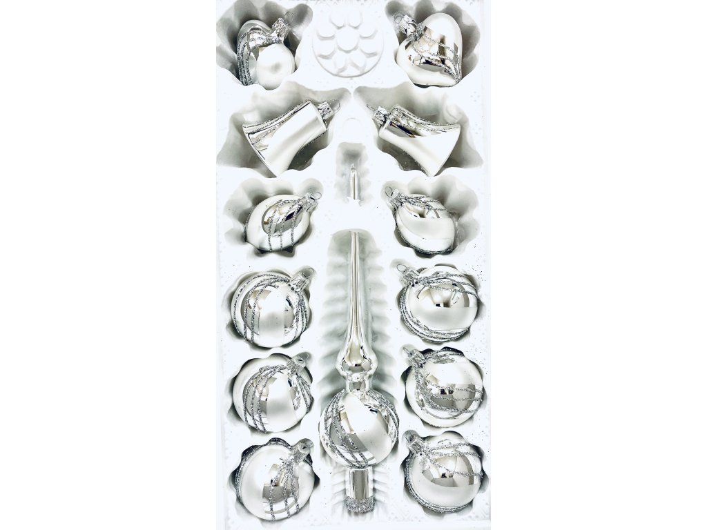 Irisa Vánoční sada stříbrných skleněných ozdob – mix tvarů, 13 ks