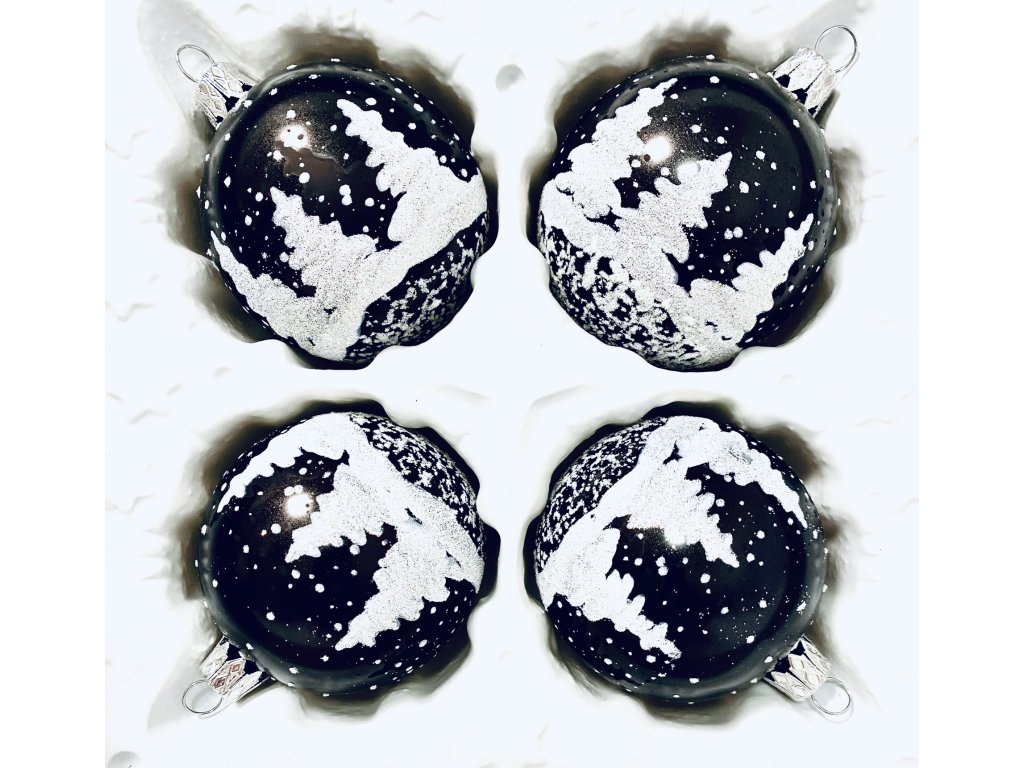 Kouzlo zasněženého lesa: Exkluzivní luxusní skleněné vánoční koule(4 ks černá ,Velikost 6 cm) IRISA