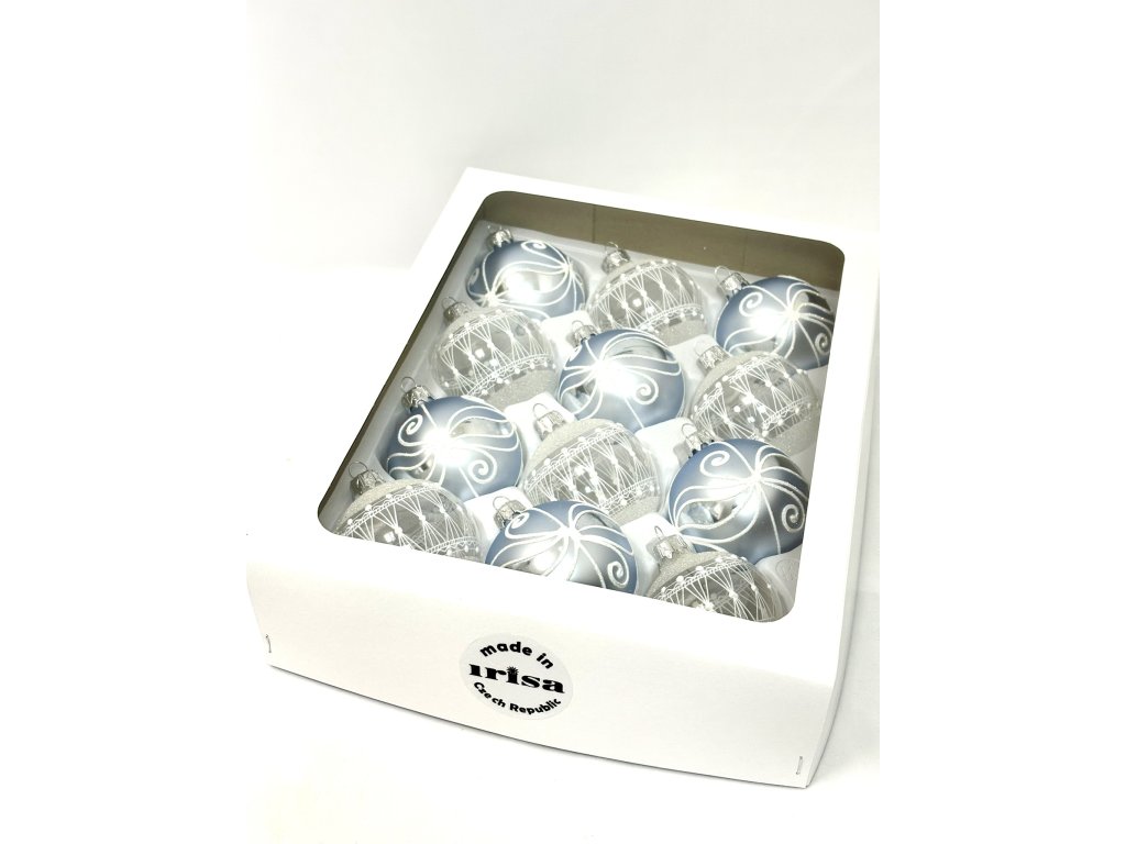 Ledově modré vánoční kouzlo – sada 12 skleněných koulí (7 cm)