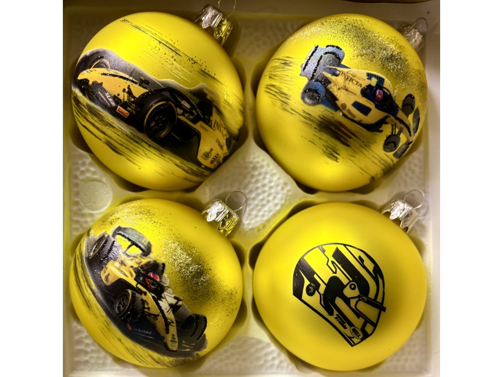 Vánoční ozdoby, co mají příběh. Tato luxusní sada čtyř skleněných vánočních ozdob o velikosti 8 cm propojuje svět motorsportu s tradičním českým řemeslem. Každá ozdoba je ručně foukaná, pečlivě malovaná a zdobená tak, aby věrně zachytila dynamiku závodního monopostu Romana Staňka. Limitovaná edice navíc nese jeho podpis, což ze sady vytváří unikátní sběratelské dílo. Žlutý matný podklad v kombinaci s výraznou grafikou dodává ozdobám špičkový moderní vzhled, který zaujme na každém vánočním stromku. Sada je vhodná jako prestižní dárek pro fanoušky závodění, sportovní nadšence i sběratele ručně vyráběných vánočních ozdob. Vznikla v Irise Vsetín, kde se tradiční české sklářské postupy snoubí s aktuálním designem a precizní ruční prací, díky níž je každý kus jedinečný.