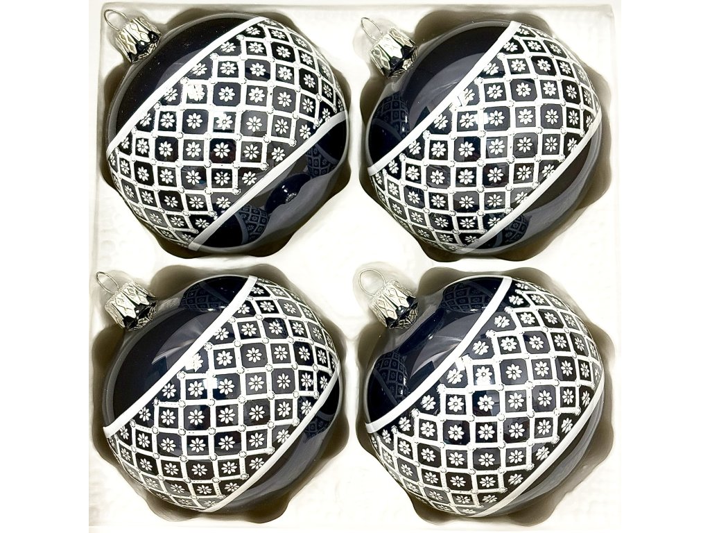 Sada čtyř modrých vánočních koulí o průměru 8 cm vnese na váš stromek kouzlo tradice i originality. Každá koule je ručně foukaná a malovaná klasickým dekorem, který připomíná staré lidové vzory. Modrá barva dodává ozdobám noblesu a vytváří jedinečnou atmosféru svátečních chvil. Tyto české skleněné ozdoby jsou ideální pro ty, kdo hledají poctivou ruční práci a chtějí podtrhnout kouzlo Vánoc originální dekorací.Doplňkové parametry