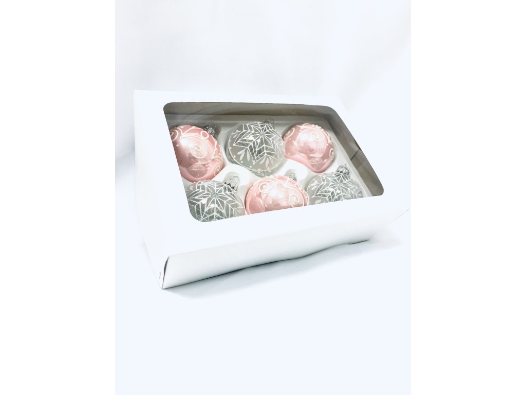 Něžná křehkost: Liora - Sada 6 ks skleněných ozdob pavučiny a mráz (čirá a růžová, Velikost 7cm) IRISA