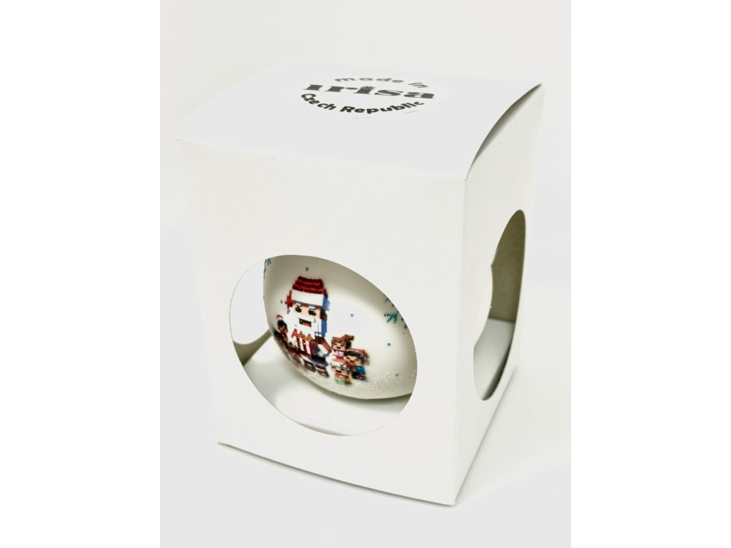 Tato originální bílá skleněná koule o průměru 8 cm spojuje tradiční české sklářské řemeslo s moderním pixelovým designem. Na matném bílém podkladu se třpytí veselý Santa Claus v červené čepici, obklopený skupinkou dětí s dárky v rukou, doplněný o jemné modré sněhové vločky. Každý detail je ručně foukaný a malovaný českými mistry, kteří vnášejí do každé ozdoby radost a sváteční kouzlo. Tato koule je ideální pro ty, kdo chtějí na svém stromku propojit tradici s hravostí a vytvořit jedinečný vánoční příběh. Dodáváno v dárkové krabičce.Doplňkové parametry